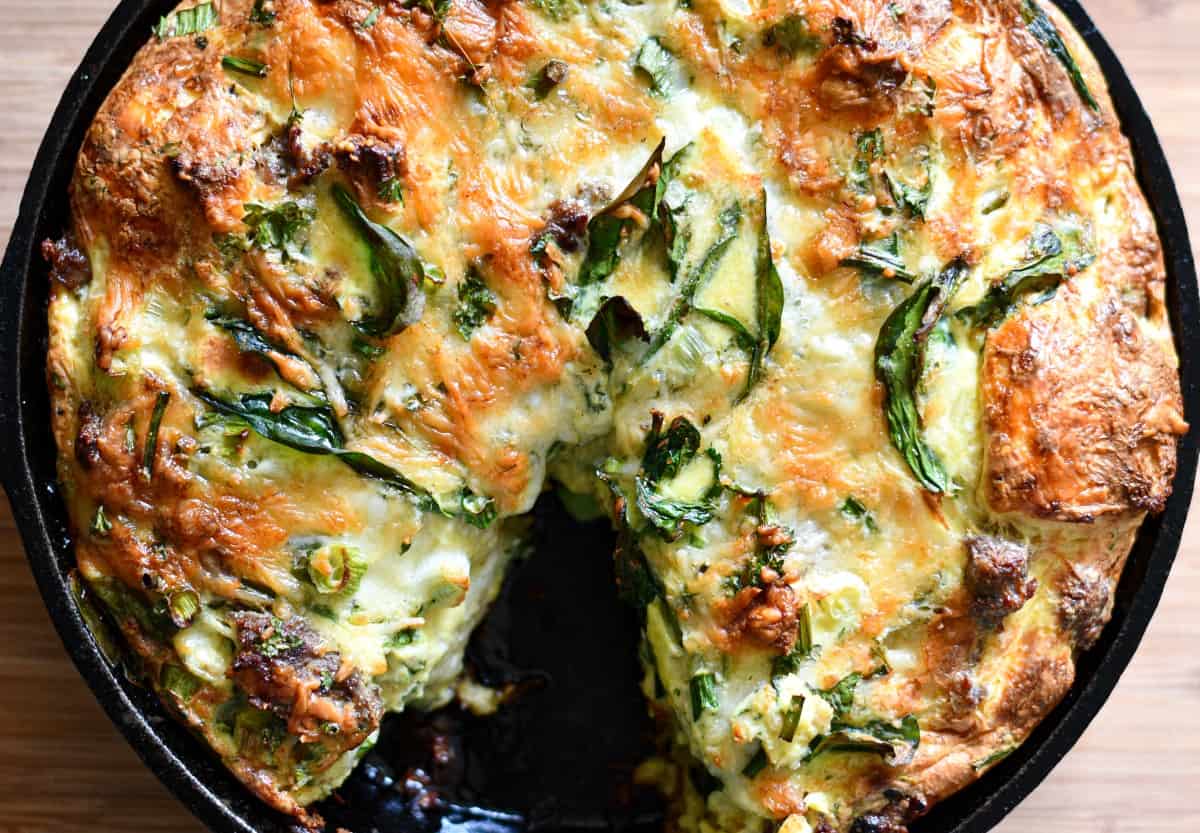 Like any homemade omelet, frittata, or quiche recipe you can customize the flavors of this breakfast strata by adding different ingredients you have available. If you don't have time to make the deer bacon, you can just use whatever breakfast sausage you have in the freezer. You can also substitute fresh kale or Swiss chard that's currently popping up in your garden instead of spinach.
