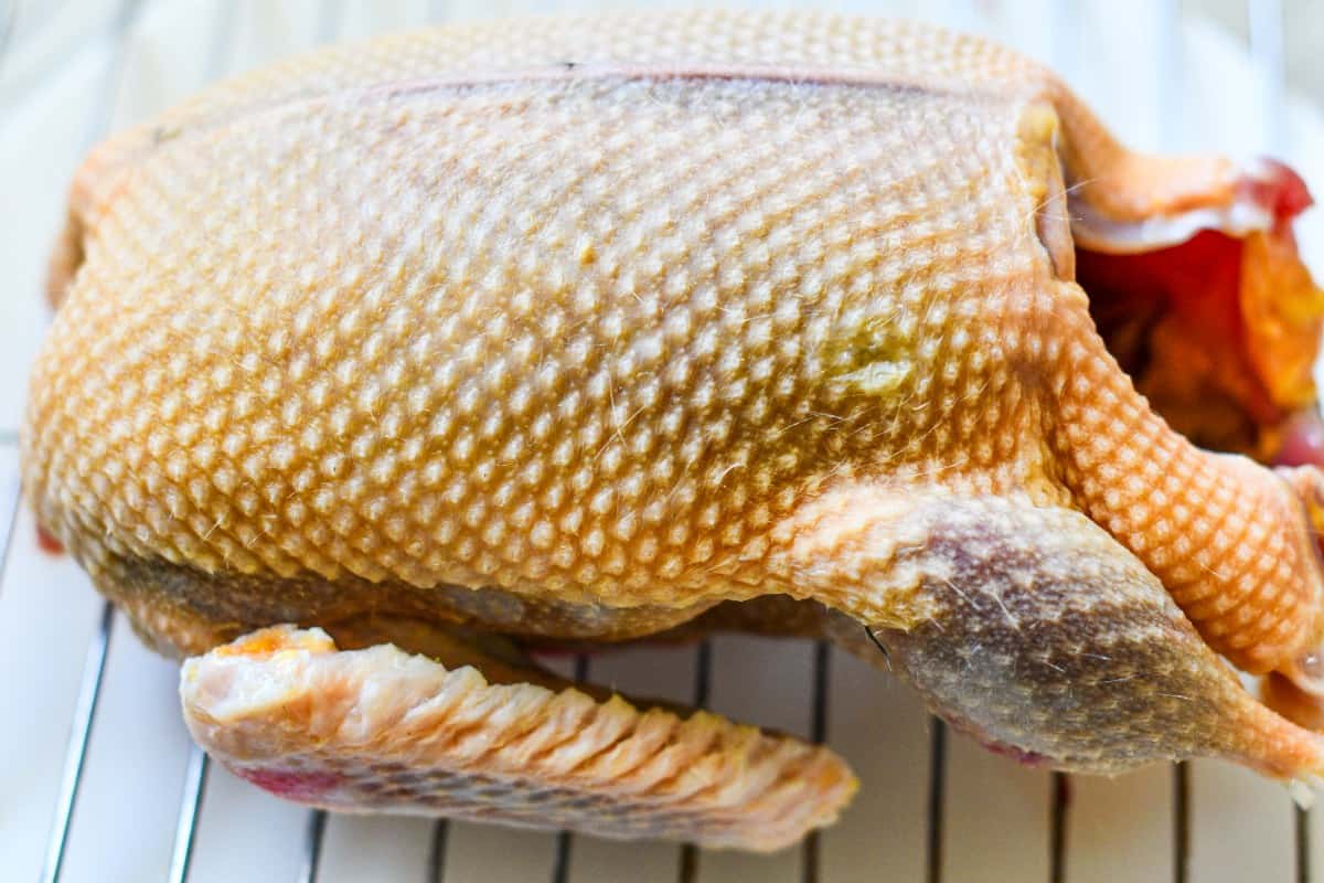 (Chef’s Tip: This drying step is the key to crispy skin. Skipping it guarantees a rubbery bird.)